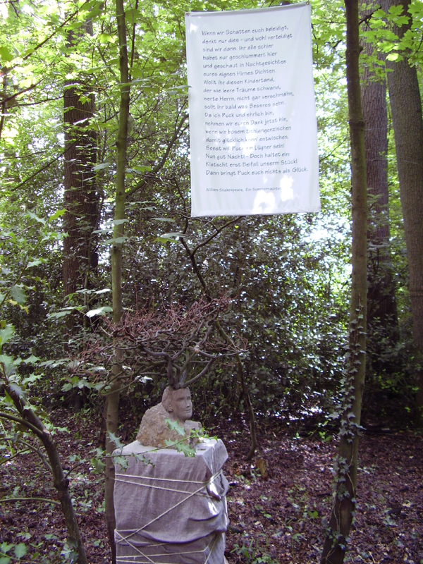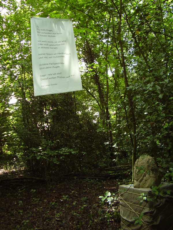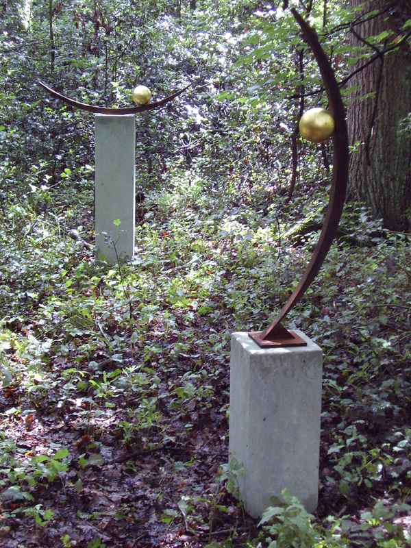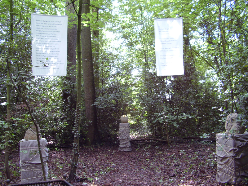 Das Besondere an dem Gelände ist ein wundervolles Waldstück, welches während der Ausstellung die beiden Aktionsstätten Betriebsgelände und Kunsthandwerkermarkt verband. Durch diesen kleinen Wald schlängelt sich ein Pfad, welcher an diesem Wochenende auf 10 Stationen von verschiedenen Künstlern aus der Region unterschiedlichster Stilrichtungen und Techniken - unter anderem von uns, Anne Wegener und Andy Rußelmann [Ferrorist] - mit Exponaten bestückt wurde.